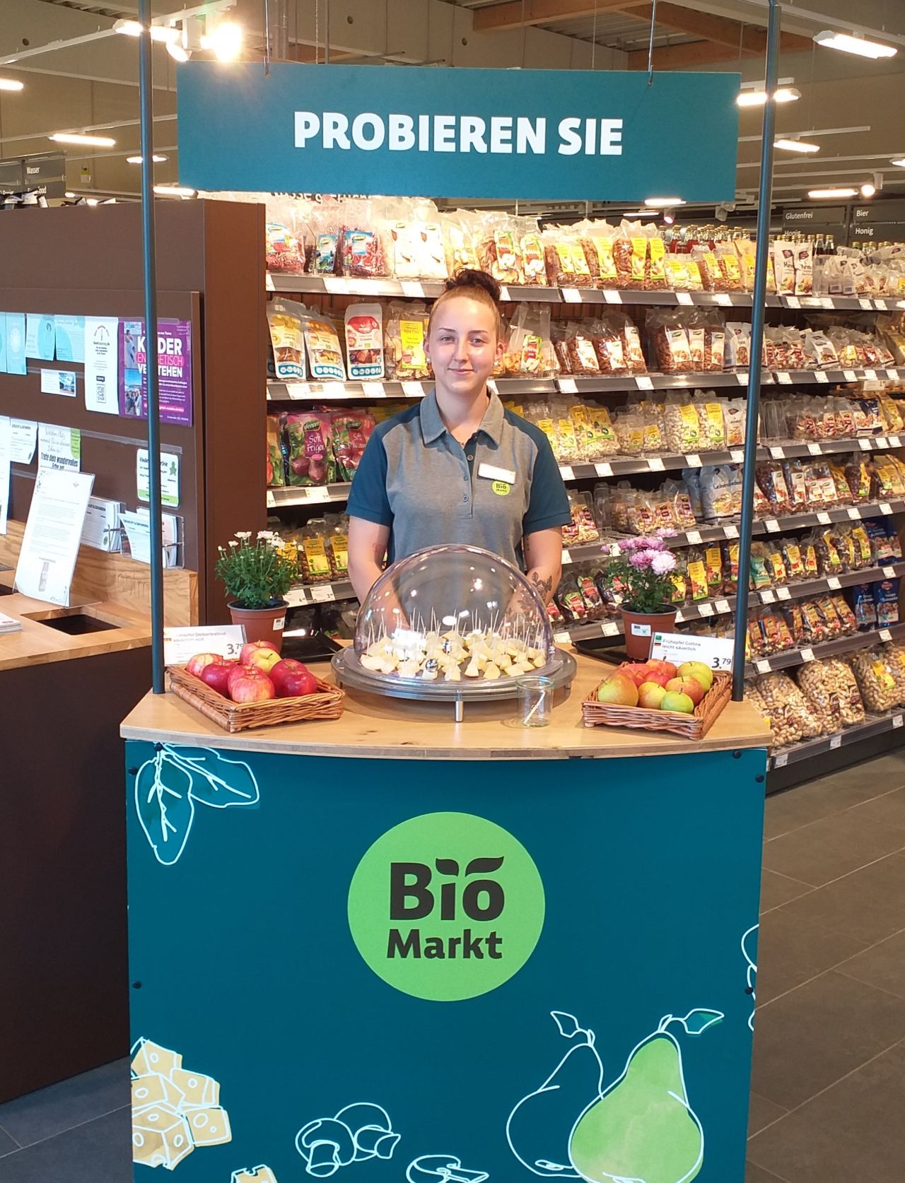 - ggf. mit Tellern und Servietten aus dem Bistro die angebotenen Produkte dekorativ präsentieren (siehe Foto unten)